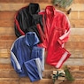 Comfy coordinating set is great for exercising or simply hanging out. Jacket has stand-up collar, zip-front, and elastic cuffs and waistband. Pant has wide elastic waistband, inside drawstring, side-seam pockets and hidden zip closure on each outer leg. 30" inseam. Polyester; machine wash. Imported.
